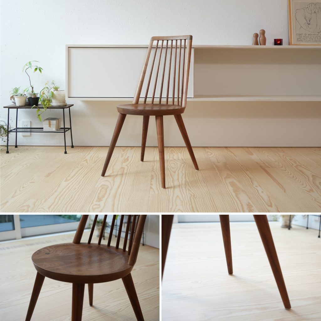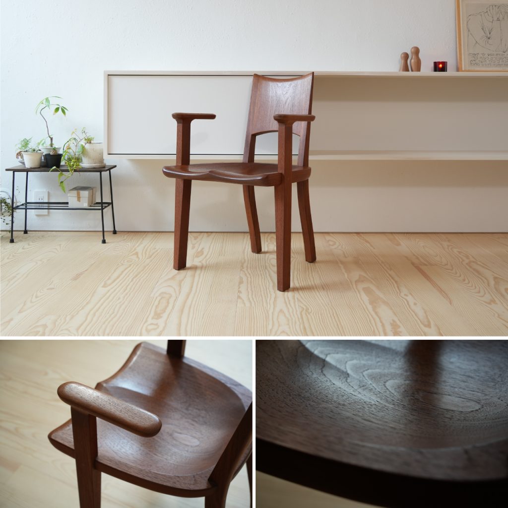 AIBAの住まい手さんも使っている方が多い「UU chair|宮崎椅子製作所(https://www.koizumi-studio.jp/item_uu_chair.html)」と、構造の考え方が近い椅子です(UU chairのお父さん的存在)。この椅子自体は、テーブル工房kikiさんの試作品としてつくられた家具で、以前家具の展示会にてオークションイベントがあり、その時に伊藤が衝動購入したものです。笑