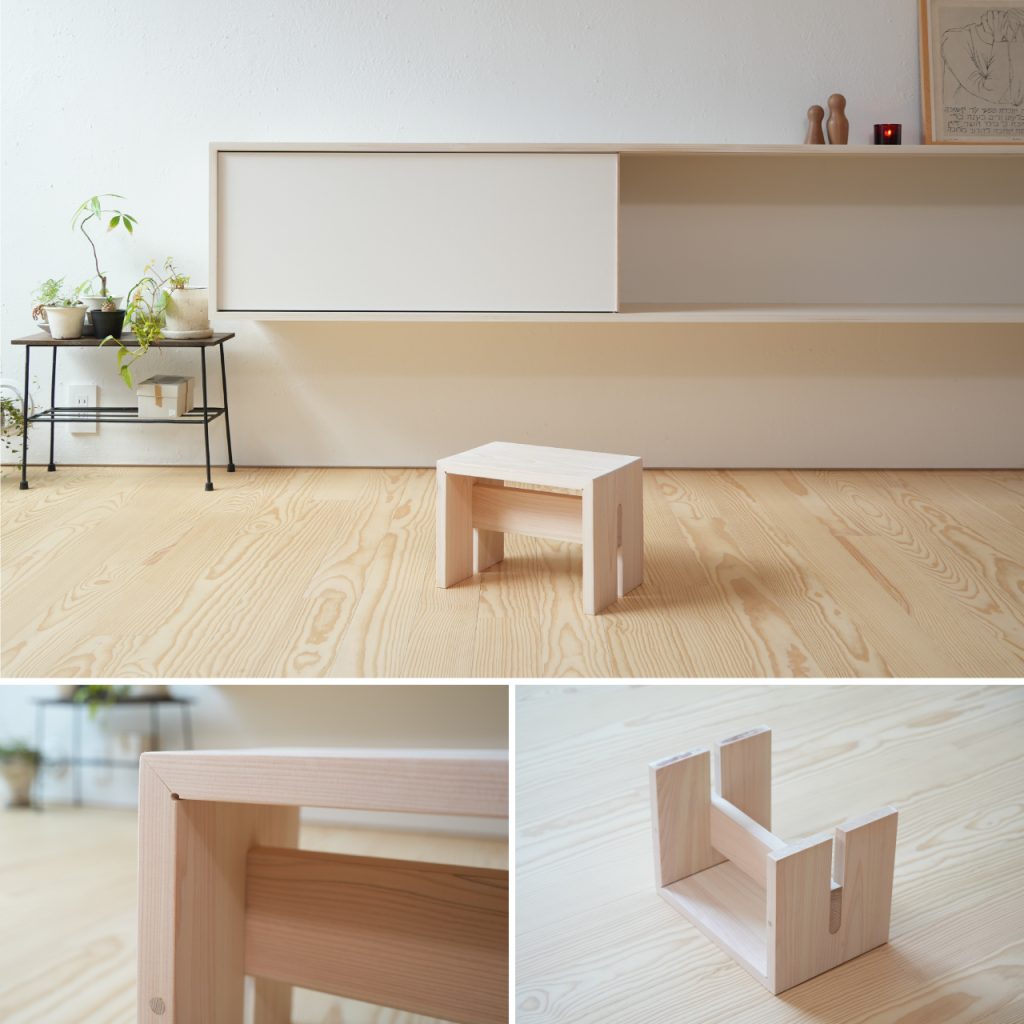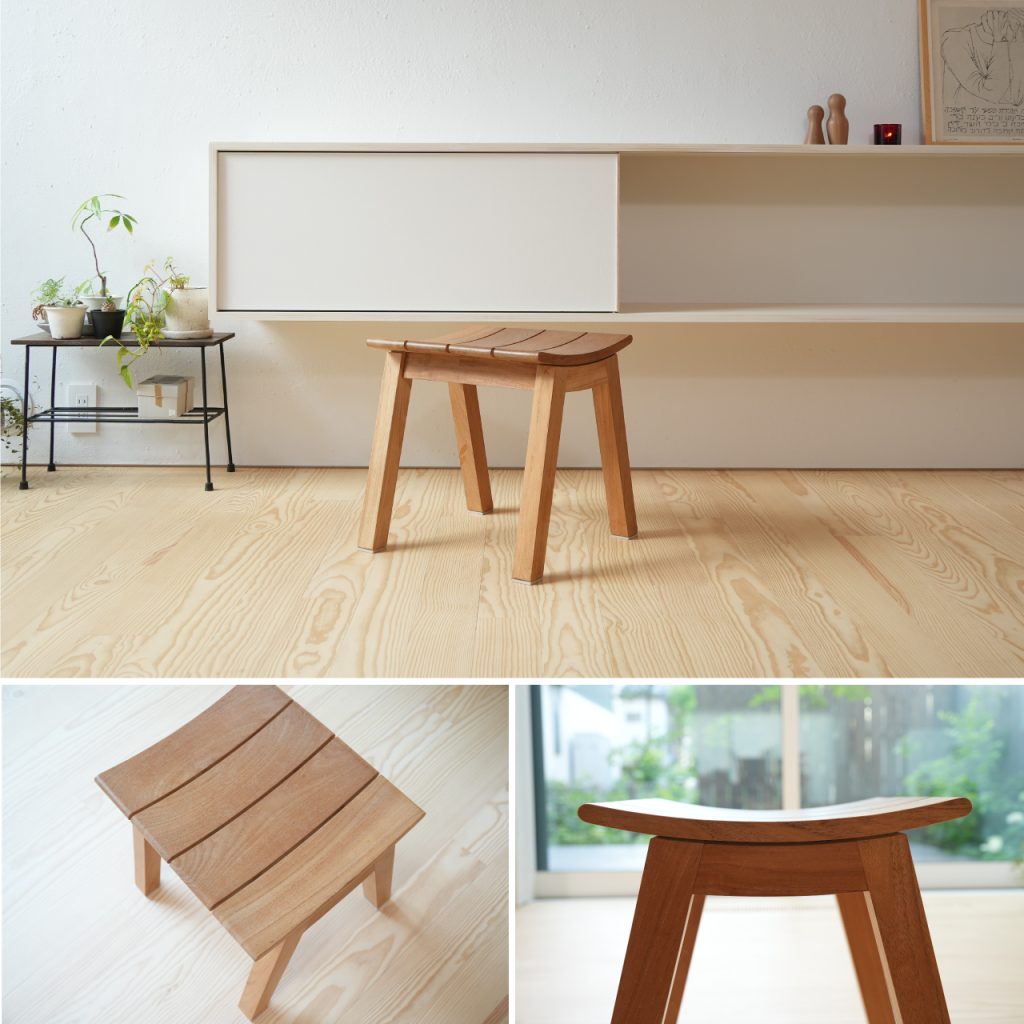 オイル仕上げや表面の削りでなめらかな手触りてありつつも滑りにくい質感になっていて、踏み台としてしっかりした安定感があります。