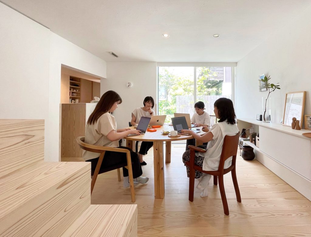 4人でパソコン作業ができる広さ(写真は自宅で広報メンバー4人でお仕事した時の様子)