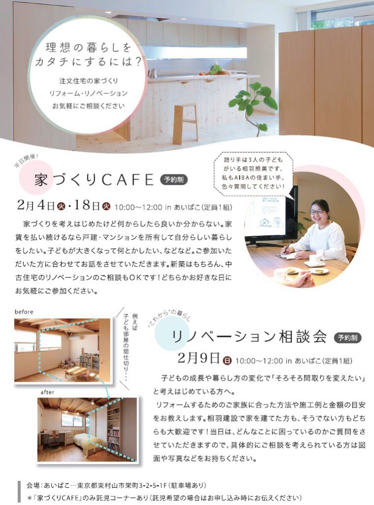 家づくりCAFE 第1・3火曜日/第2日曜日 開催