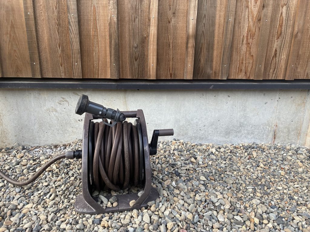 ホースというと緑色のものを定番でよく見かけますが、建物の外観と合わないかなということでいろいろと探し、