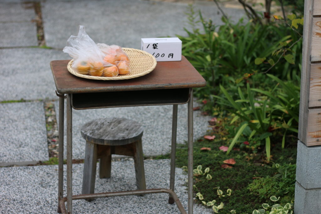 庭で採れた柿や、山で採れた柚子を庭先に置いてみた1年でした。