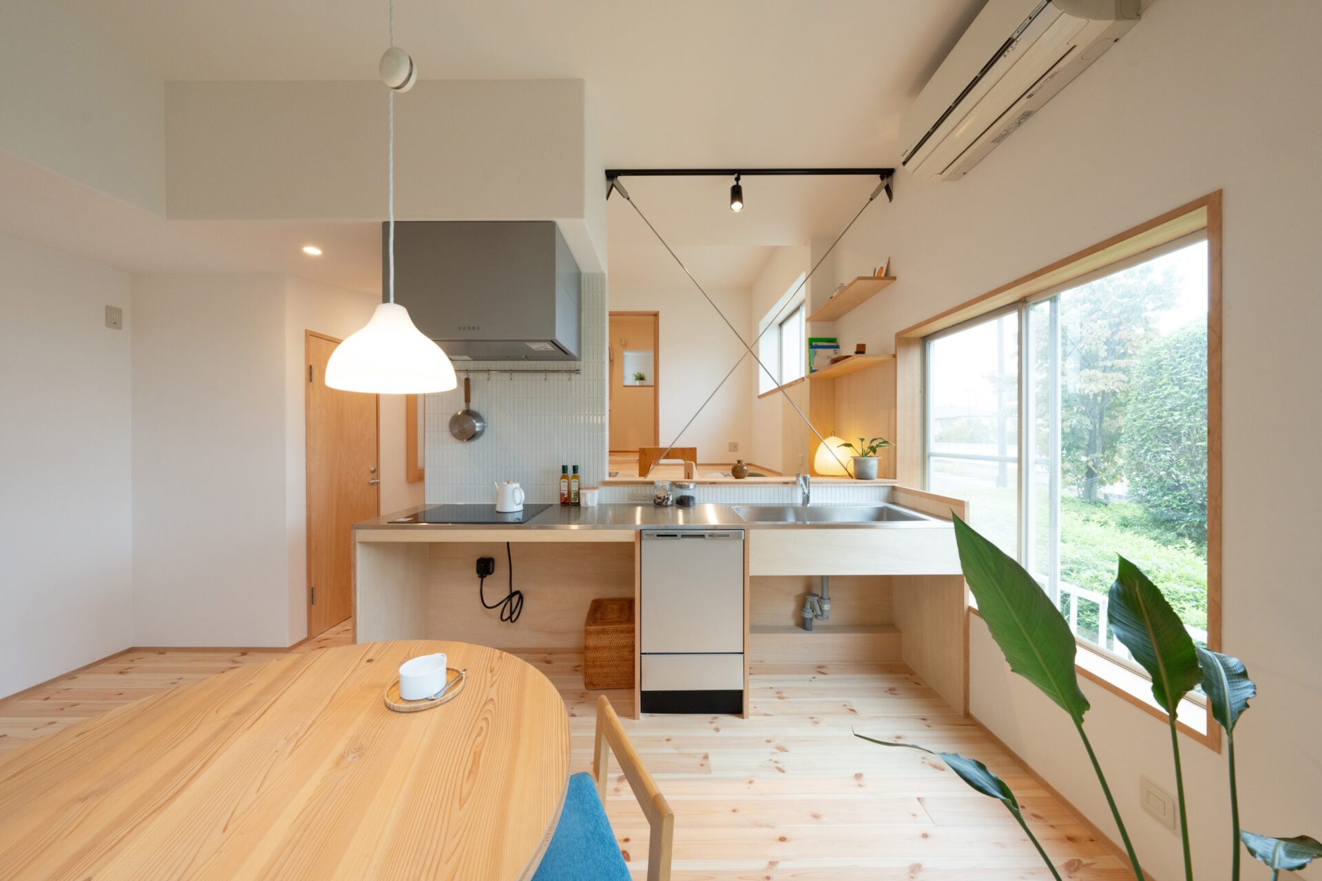 コンパクトでもゆったり使えるリビングダイニングにはワークスペースにもなるカウンター設置。