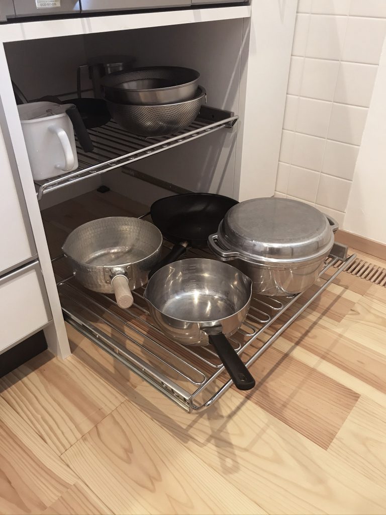 キッチンで使うお鍋やフライパン、ボールなどはどのように収納されていますか?
