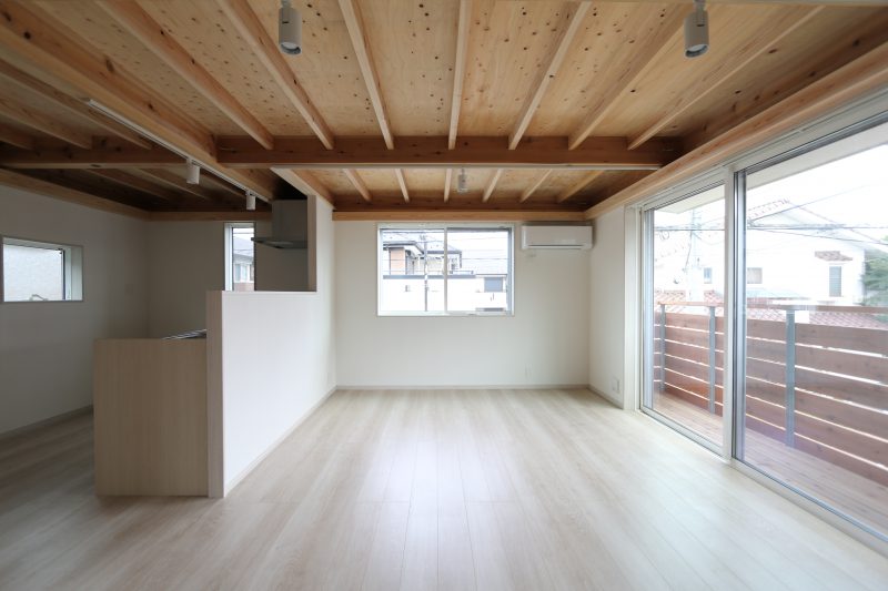 南東角地の2階リビングはとても明るい空間。