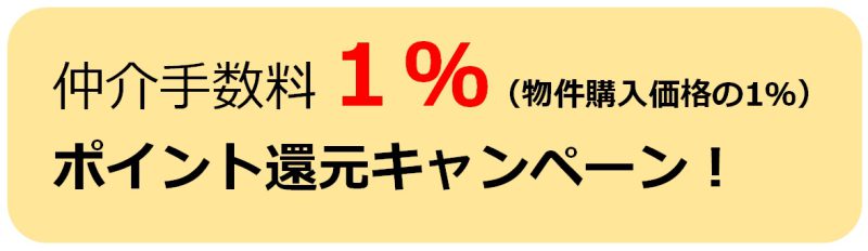 仲介手数料1%(物件購入価格の1%):ポイント還元キャンペーン!