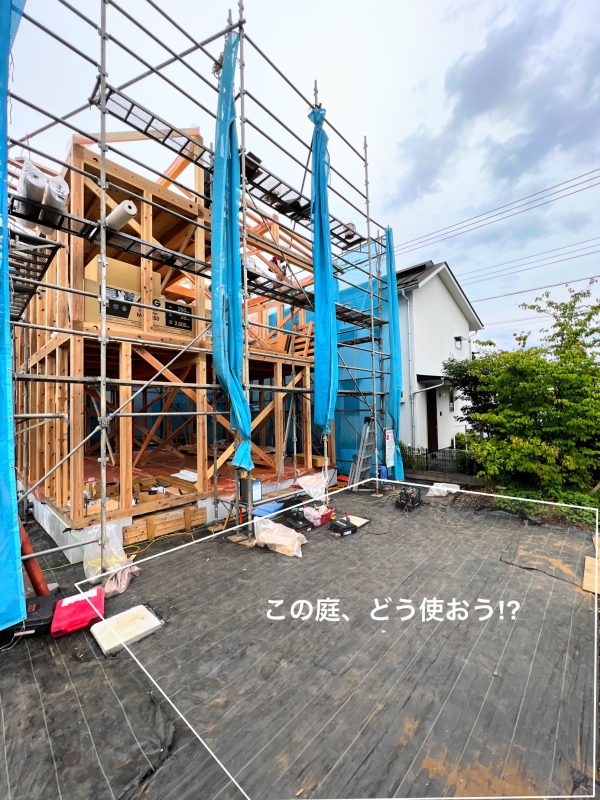 土地にゆとりがあるためこれだけのスペースが庭として残されています。この庭で何をしますか???