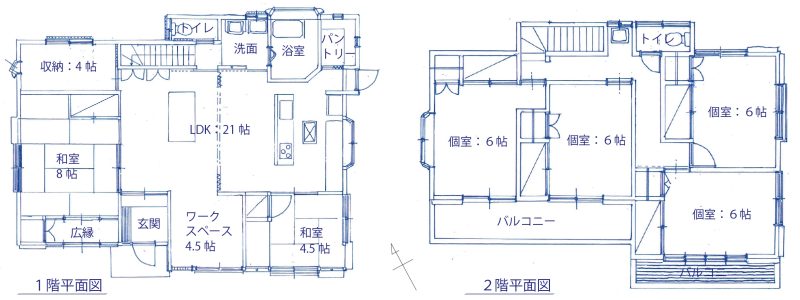 加えて1階に8帖、4.5帖の個室にパントリー、4帖の収納スペースもあります。