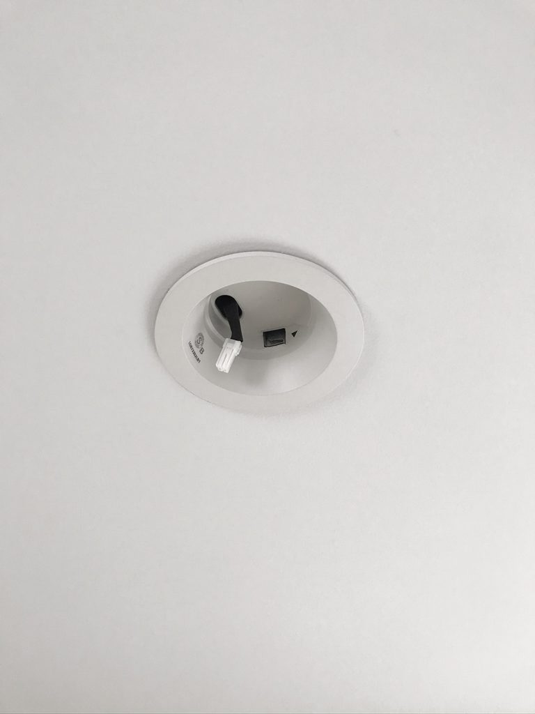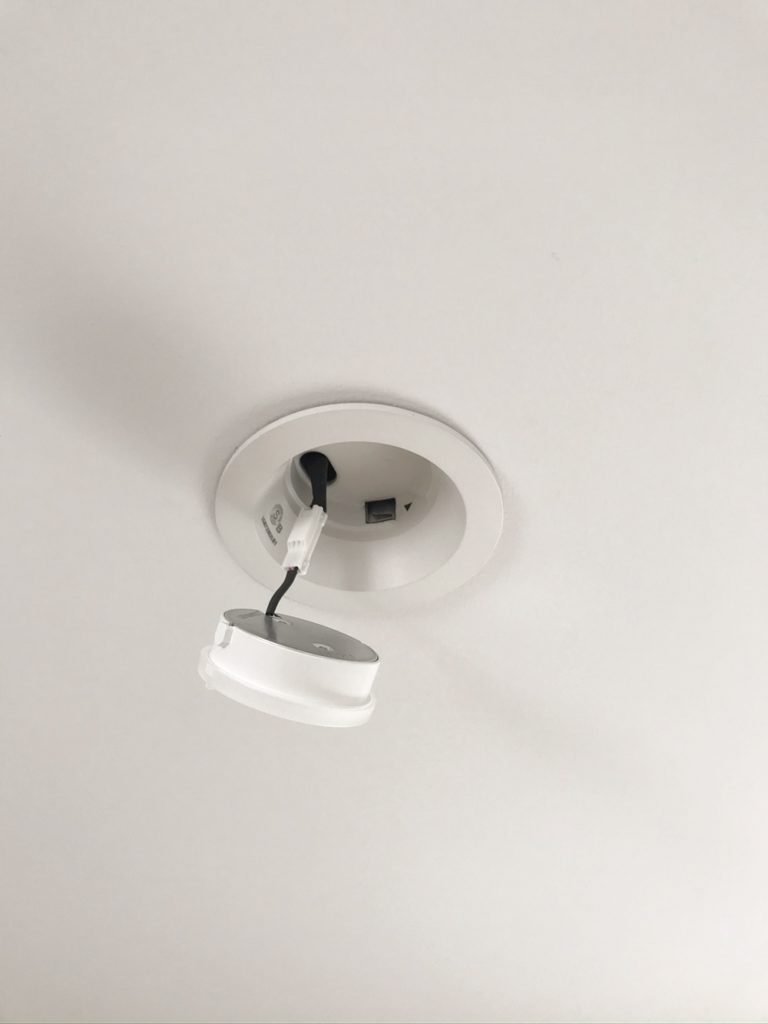 最近のダウンライトは、ネジで電球をはめこむタイプではなく、写真のような形が多いかと思います。