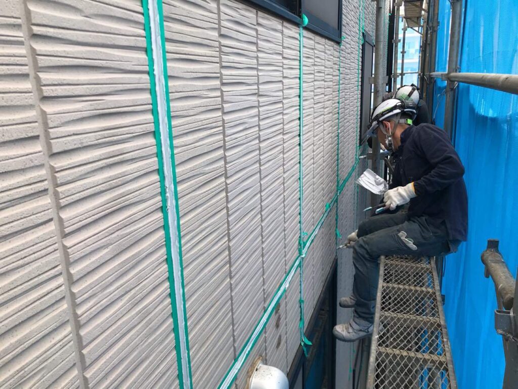 シール材には、付着性の高いウレタン系シール材や内装水回りやガラス周囲に用いるシリコン系シール材、また耐火性を持つ耐火シール材等があり、用途に合わせて材料を選択する必要があります。この外装修繕は、意匠性とあわせて防水性も改善し、総合的に建物の寿命を延ばすことへつなげています。