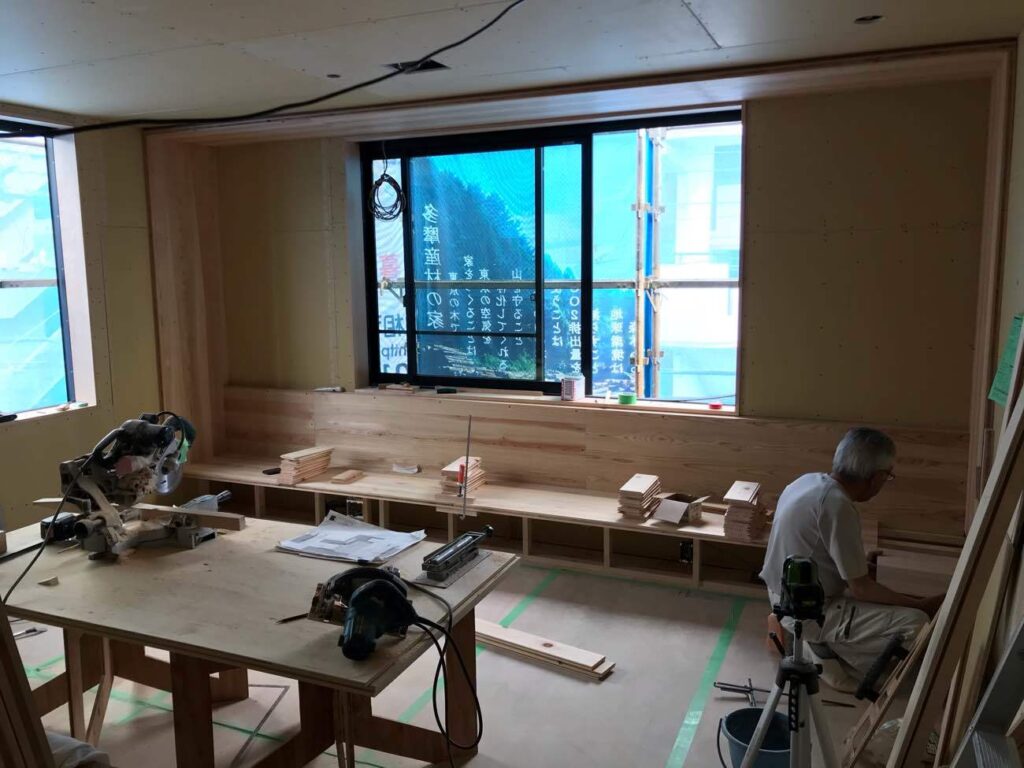 相羽建設本社屋のリノベーション工事は、ここで3階部分が完成となります。関わっていただいた多くの皆様ありがとうございました。今回の工事では1フロア内にスタッフが通常業務を行いながら平行して事務所改修工事を進めています。私が考えたのはまず3階を仕上げ、そこへ2階スタッフが引越し、そして2階と1階の改修を進めるという流れでした。建築をつくる流れについて仕上げや作業性を良くするために材料や職人さんの仕事は、奥から手前へ、上から下へという自分なりのセオリーを決めています。ひとまず第一関門はクリアできそうです。