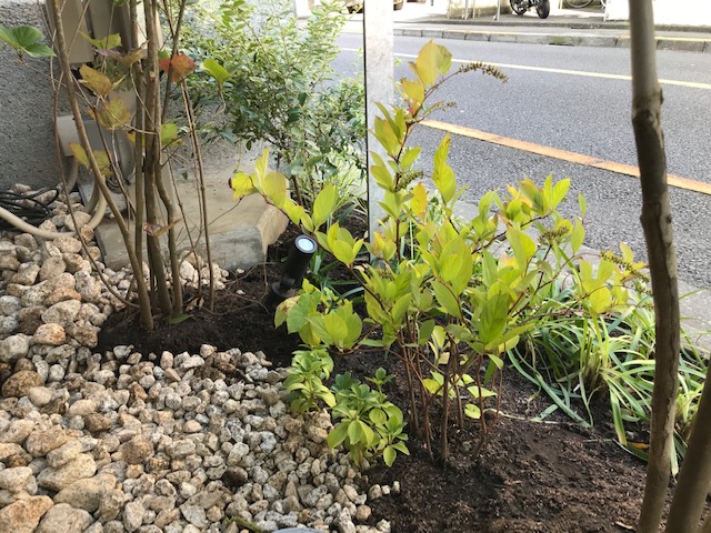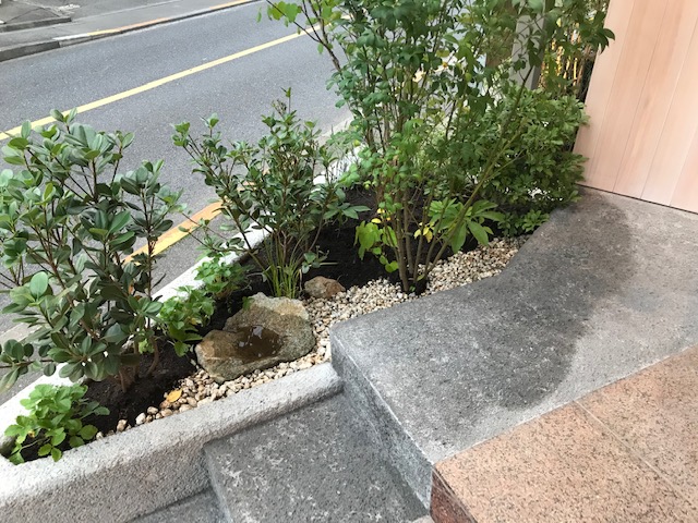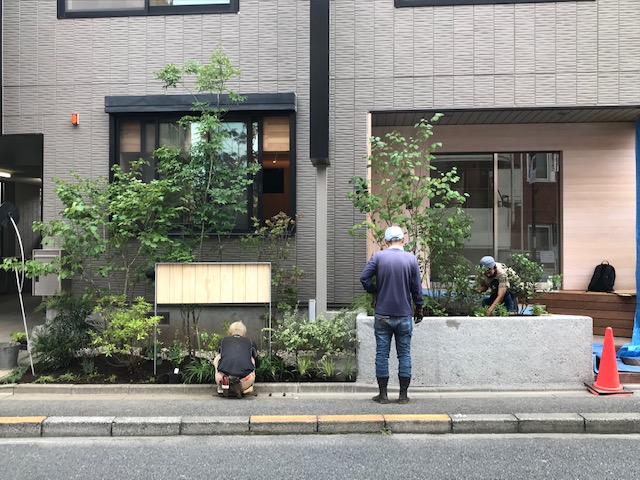 植栽を植えたばかりの時期はまだ根がこの土に根付いていなく不安定な状態です。そのために根づくまでは毎日の水やりがとても大切。夏場は朝または気温の下がった夕方にたっぷりと水をあげる必要があり、この先2ヵ月程は継続していく必要があります。愛着のあるこの庭が経年や四季の中でどう変化していくのかを楽しみながら付き合っていきたいと思います。