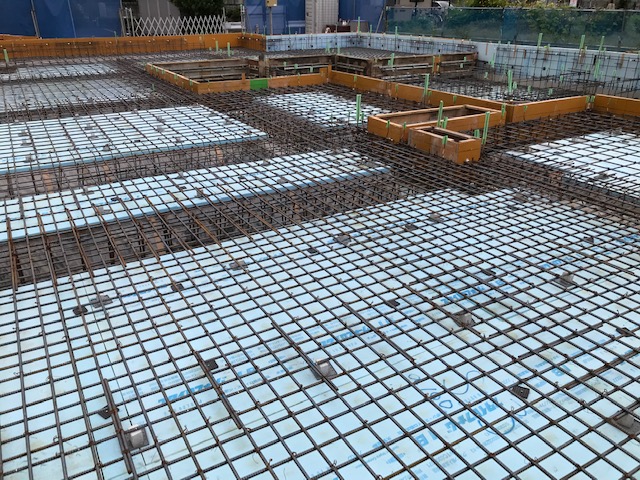 9月初旬に着工した木造保育園の工事は、現在基礎工事を行っています。鉄筋配筋組が完了して、来週の基礎コンクリート打設へ備えます。