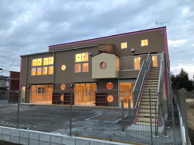 新築工事中の木造保育園がまもなく竣工を迎えます。本設電源が供給されて照明が点灯されました。ほっとする瞬間でもあります。
