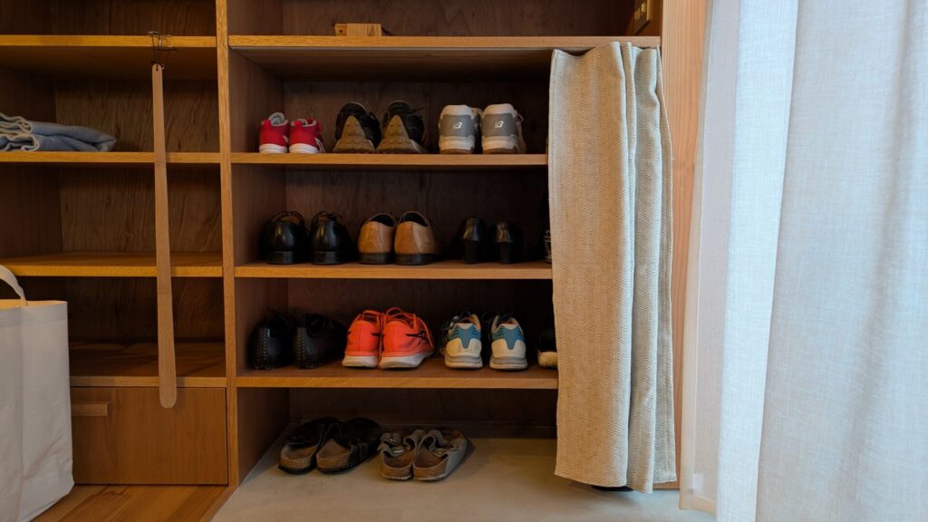 一緒に購入した生地で、玄関の靴収納の日よけも作成!