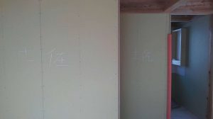 あわせて、現場監督は仕上げ材の指示などを石膏ボードに書いていくのですが、