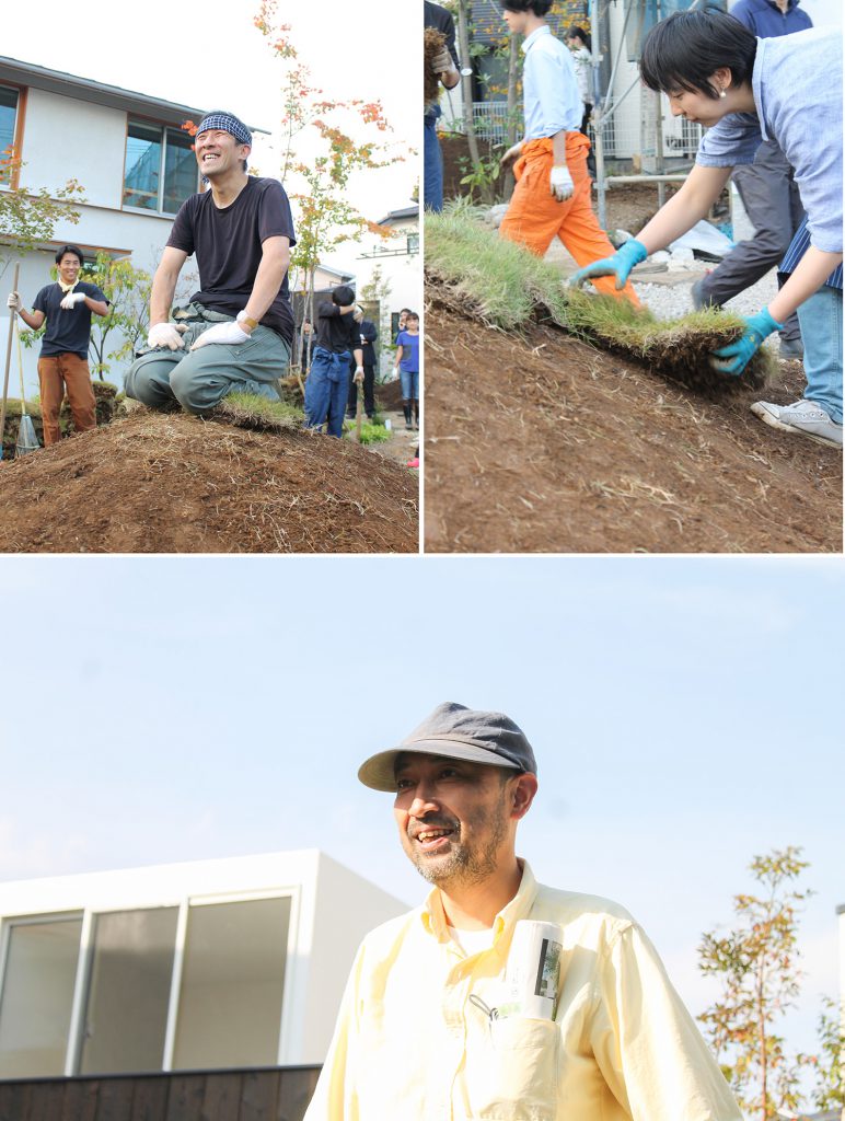 つむじの庭でも、小林賢二さんと小泉誠さん、相羽建設のスタッフとで丘づくりワークショップを開催しました。