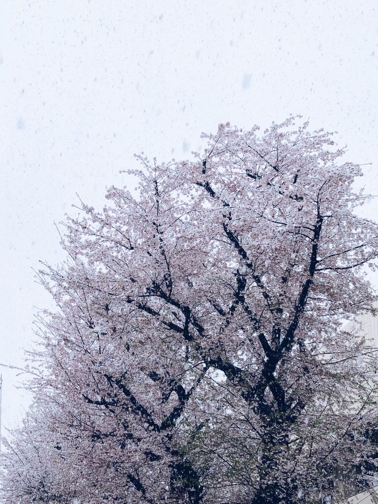 東村山市でも桜が満開になっていて、桜と雪を一緒に見られることに。