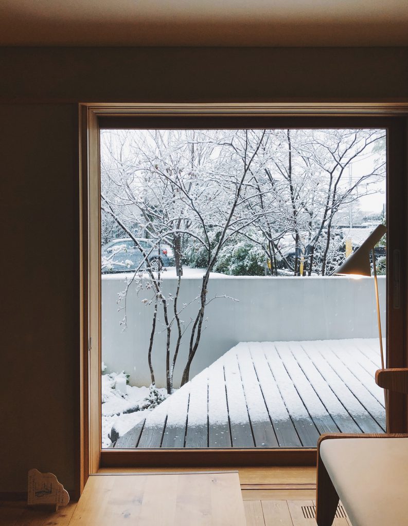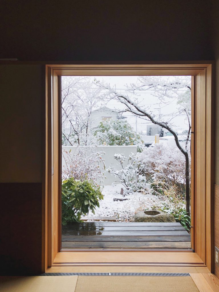 雪景色の庭も素敵です。室内があたたかいので、心穏やかに外の景色を楽しむことができます。