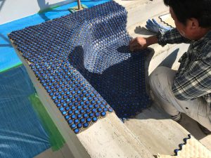 施工は、普段から住宅の現場でもお世話になっているタイル職人の里見さん