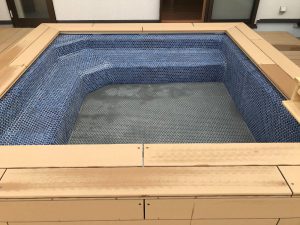 先日竣工した保育園では露天風呂をタイルで仕上げました