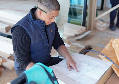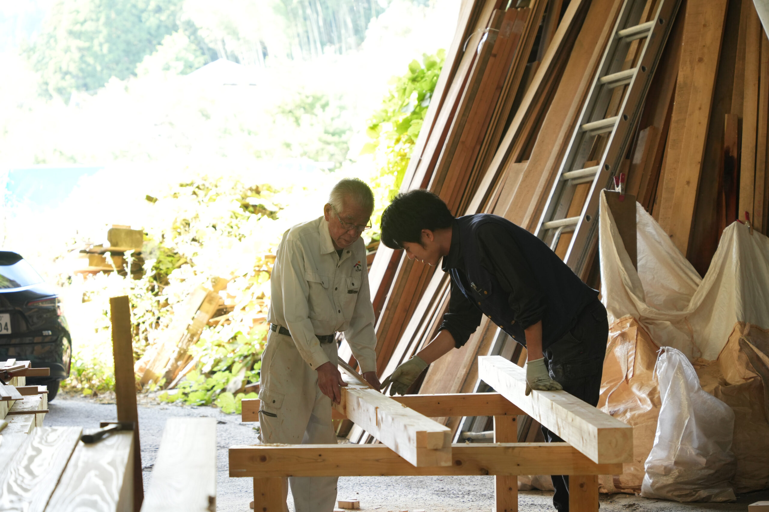 先輩社員大工のもとで現場を担当し、棟梁になるために段取りを覚え、