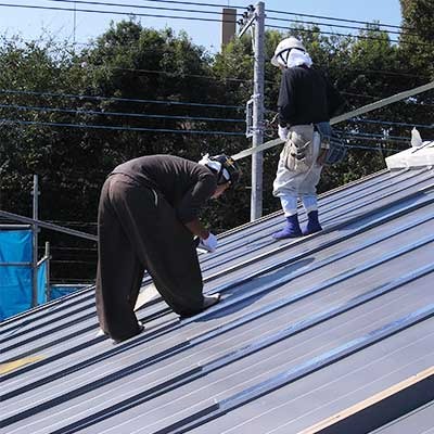 板金職人は、その名の通り板状の金物を扱います。家においては屋根や外壁、庇、雨樋など雨が入り込むような場所を板金できれいに覆って保護します。相羽建設の家づくりでは、屋根や外壁の仕上げにガルバリウム鋼板を使うことが多いです。家の大敵である雨の処理は「雨仕舞(あまじまい)」といい、家づくりの間は常に、何重もの対策を施します。その最後にうまく納めるのが板金屋の技。現場で折り紙でも折るように板金を美しく曲げ、葺いていきます。外側の目立つ部分であるがゆえに、雨から家を守る機能と、見た目の美しさを兼ね備えた仕上げが真骨頂です。
