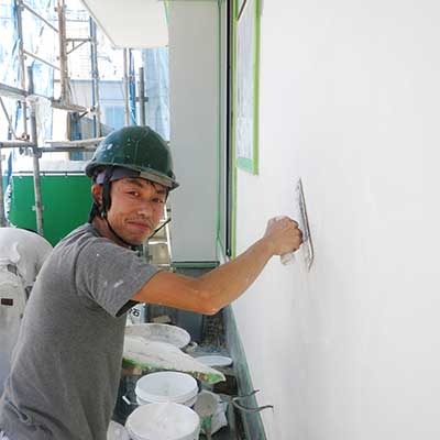 ハケやローラー、スプレーなどを使って建築の内壁や外壁、床や天井などの表面を塗装します。相羽建設が自然素材を活かした家づくりにチャレンジできるのも、塗装職人さんの丁寧な仕事ぶりのおかげなのです。人やペットが触れることの多い床や壁だからこそ、安全性の高い塗料を使用しています。バルコニーやウッドデッキでは、木部を塗装でコーティングすることで、耐久性を上げています。見た目の美しさと性能を兼ね備えた“塗り”で建物を仕上げます。