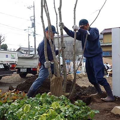 その土地の気候風土や建物のデザインに合わせて、植物を選んで庭を作るお仕事です。四季を通してさまざまな表情を見せる外構になるように、また時が経つほどにさらに豊かな庭になるように、植物の性質や相性を把握したうえで空間を作り上げます。家づくりの後も剪定等で定期的なメンテナンスに入るので、長いお付き合いになります。お手入れ方法や植栽選びなど、造園についてわからないことがあればぜひご相談ください。