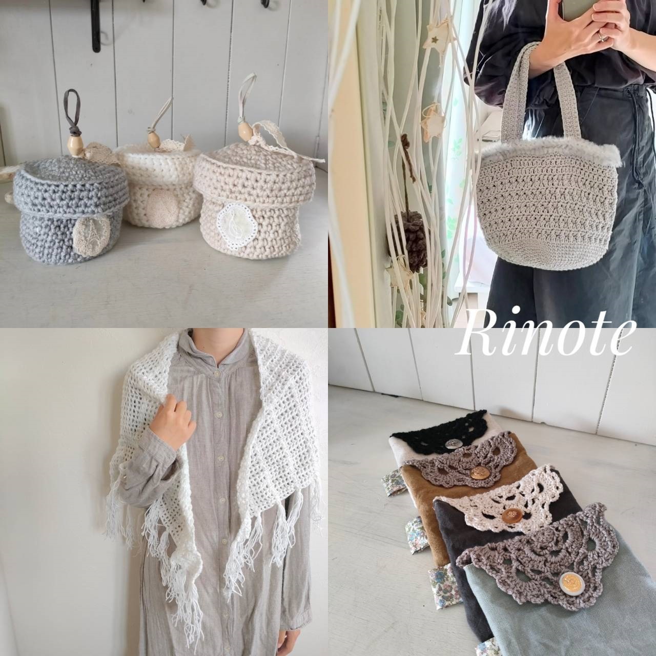 かぎ編みや布を使いポーチや小物。身につける物やバック等色々な雑貨をナチュラルな色合いで作っています。