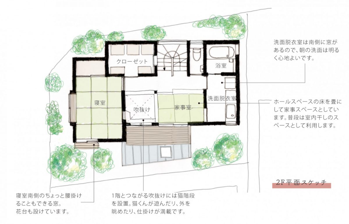 建て主さんが家づくりのテーマにあげていた「家中を風が吹き抜け、きちんと料理をし、居間に集い、寝室でぐっすり寝る」という言葉にとても共感しました。