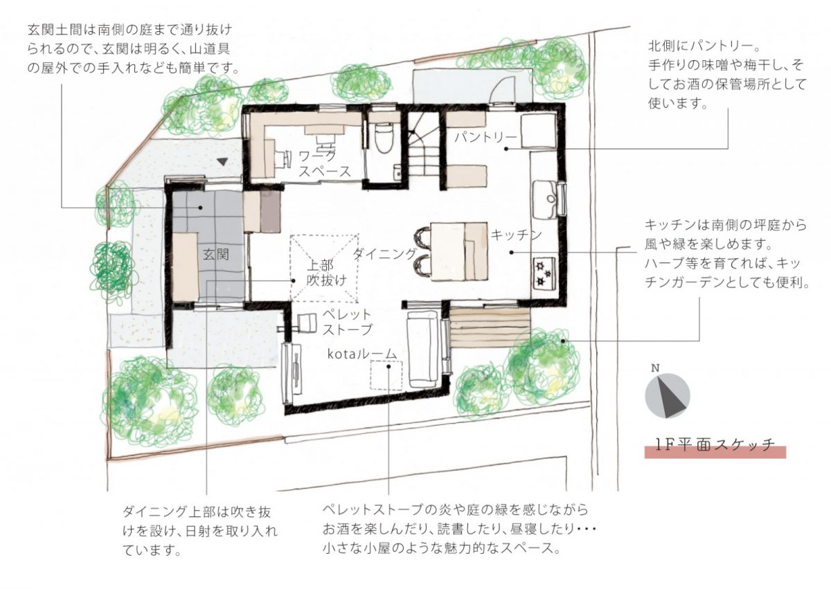 周囲の自然になじんで佇んでいるシンプルな小屋のようなそんなお家になればいいと考え「kotaハウス」と名付けました。