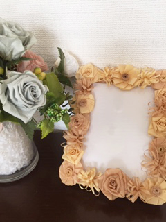 大工さんが無垢の木材を削るときにできるかんなくずを使用して、お花のモチーフを作り、