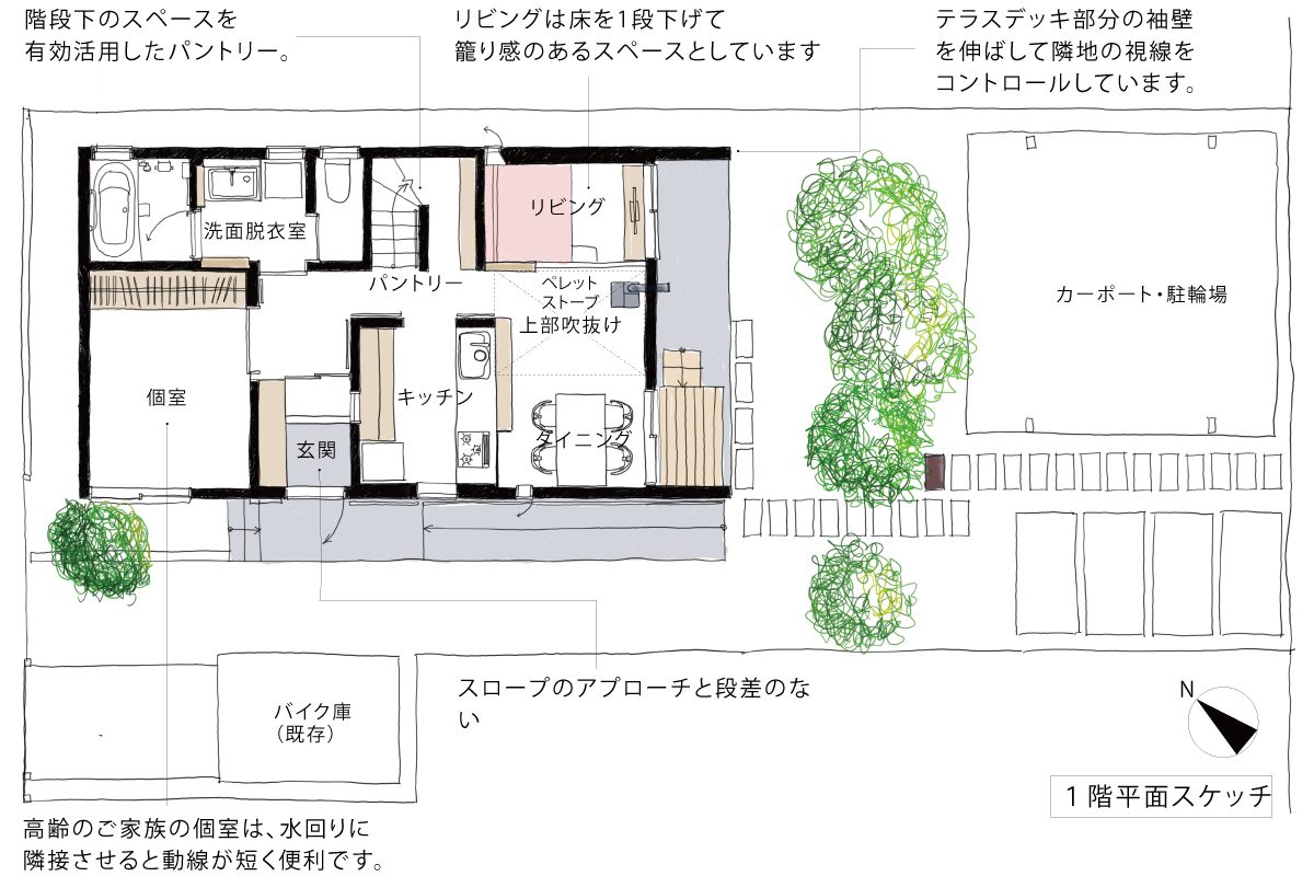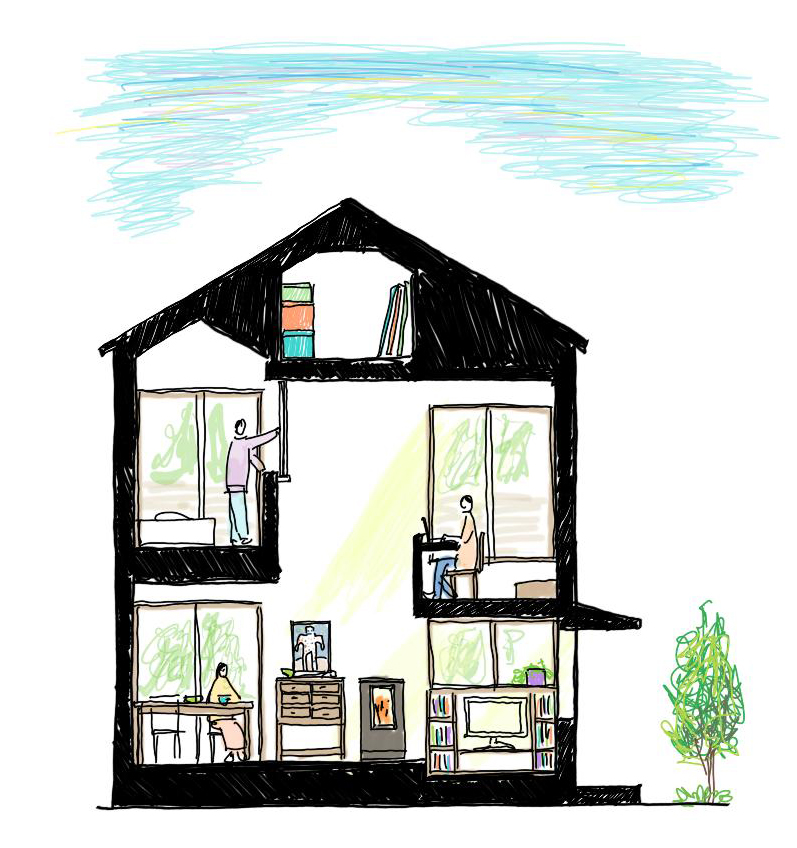 籠り感のある家族の居場所が見え隠れしながら点在している空間が良いと考えました。