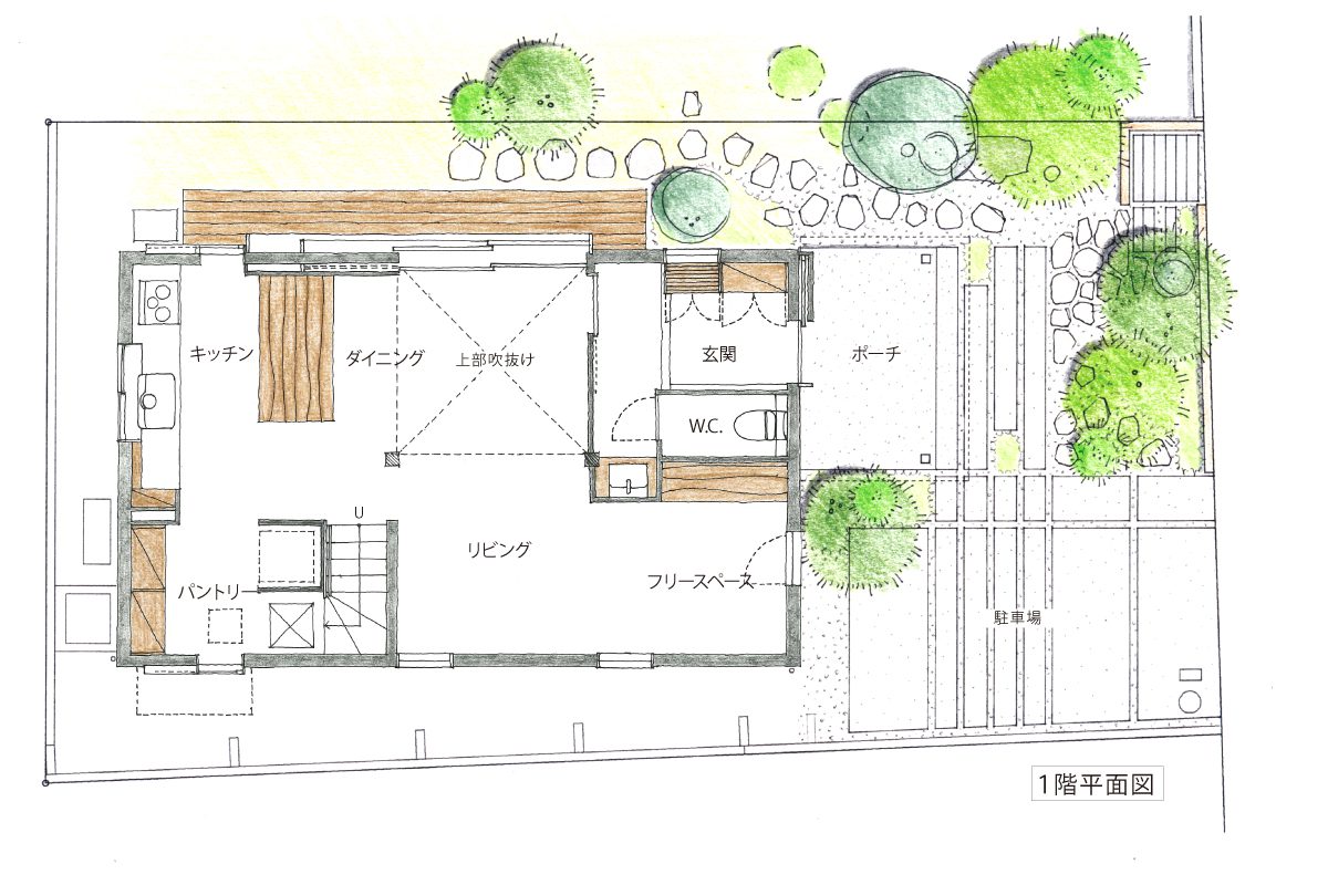 それと、実はこのお住まい、建築のお仕事をされているK様ご主人がプランをつくりました。そのプランをもとに、相羽建設が詳細設計のお手伝いをしています。さらに、小林賢二さんに造園デザインをしていただき、三者でコラボした住まいとも言えます。そんなことも注文住宅ならではと言えますね。(設計 中村)