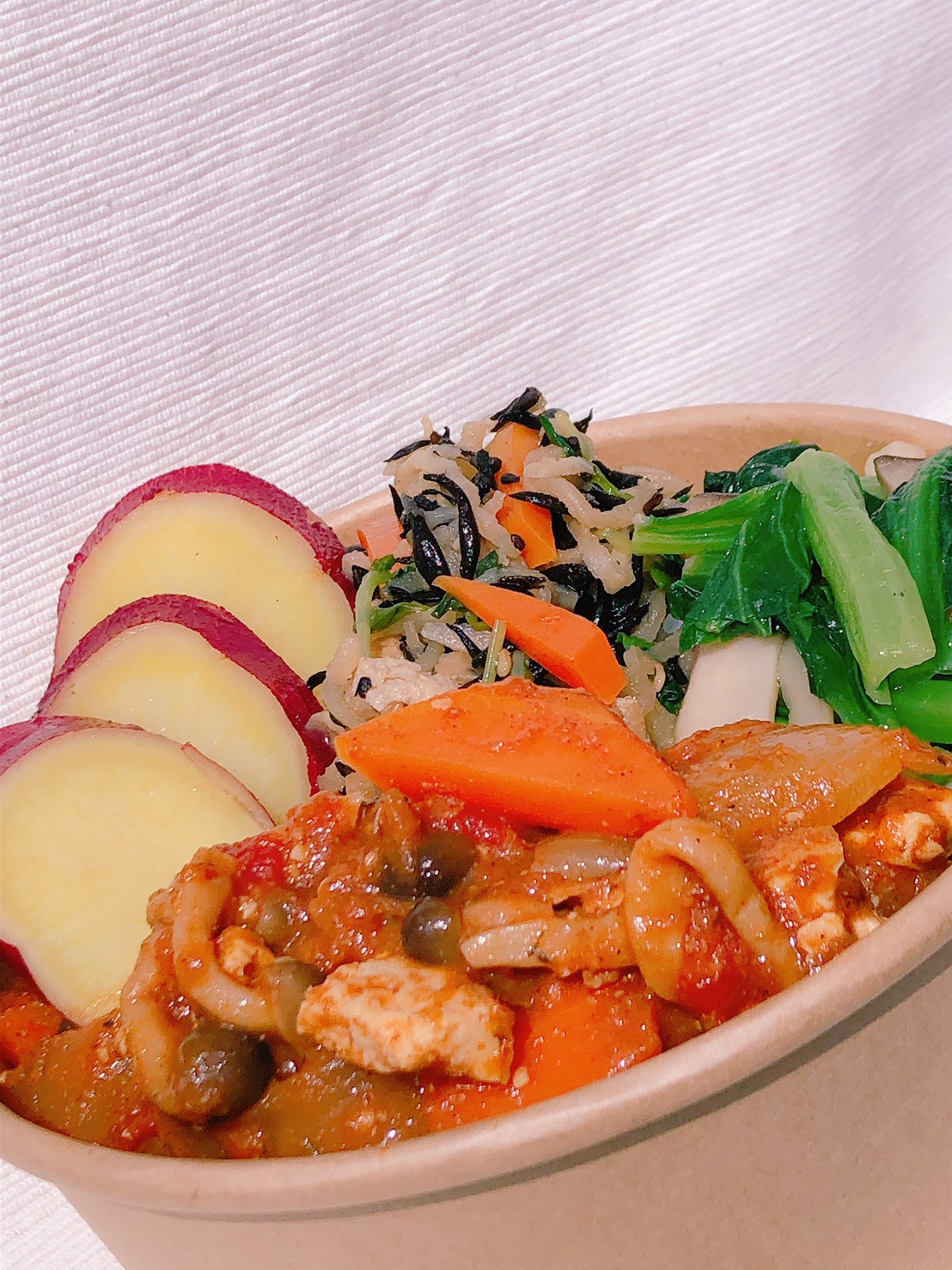 野菜のおかずたっぷり、ほかほかのお弁当をお届けします。