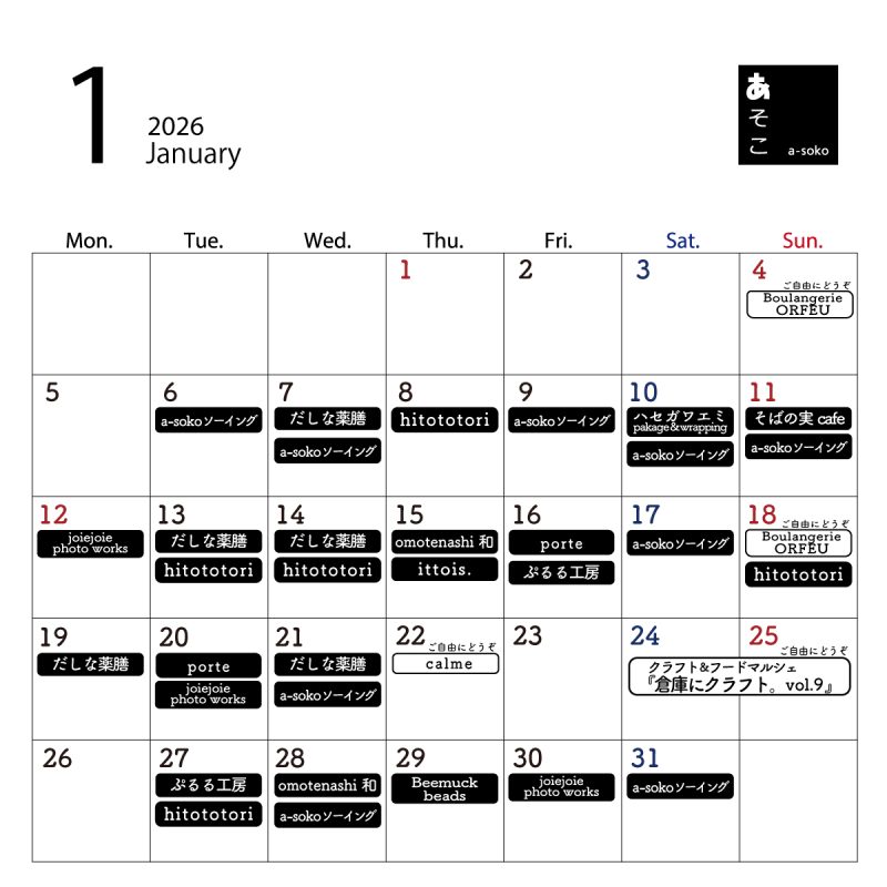 (a_soko.kiyose)にてイベントカレンダーを公開しております