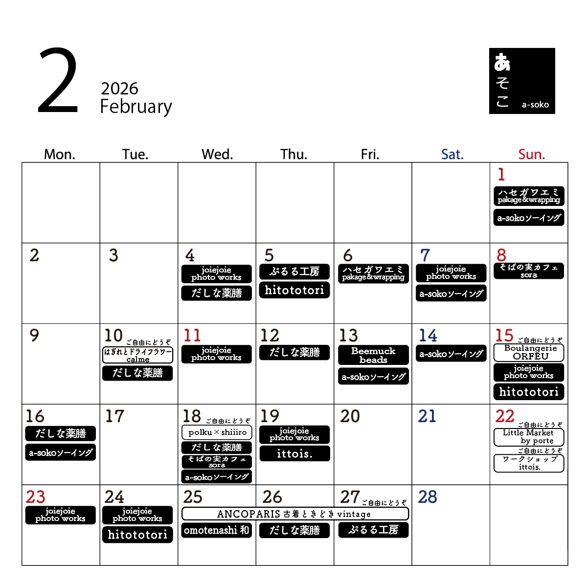 2月|a-soko イベント情報