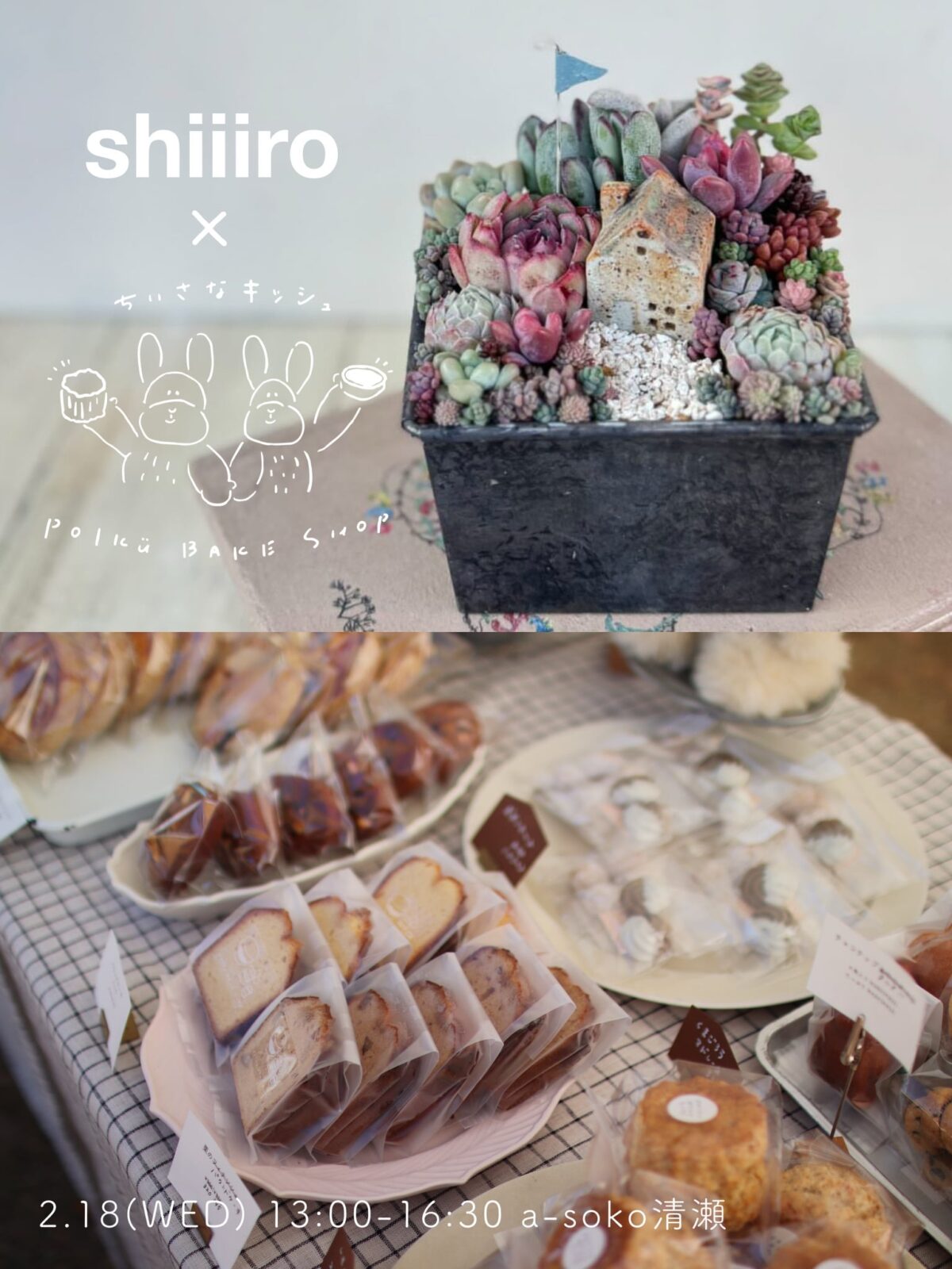 「多肉寄せ植えワークショップと焼菓子販売」