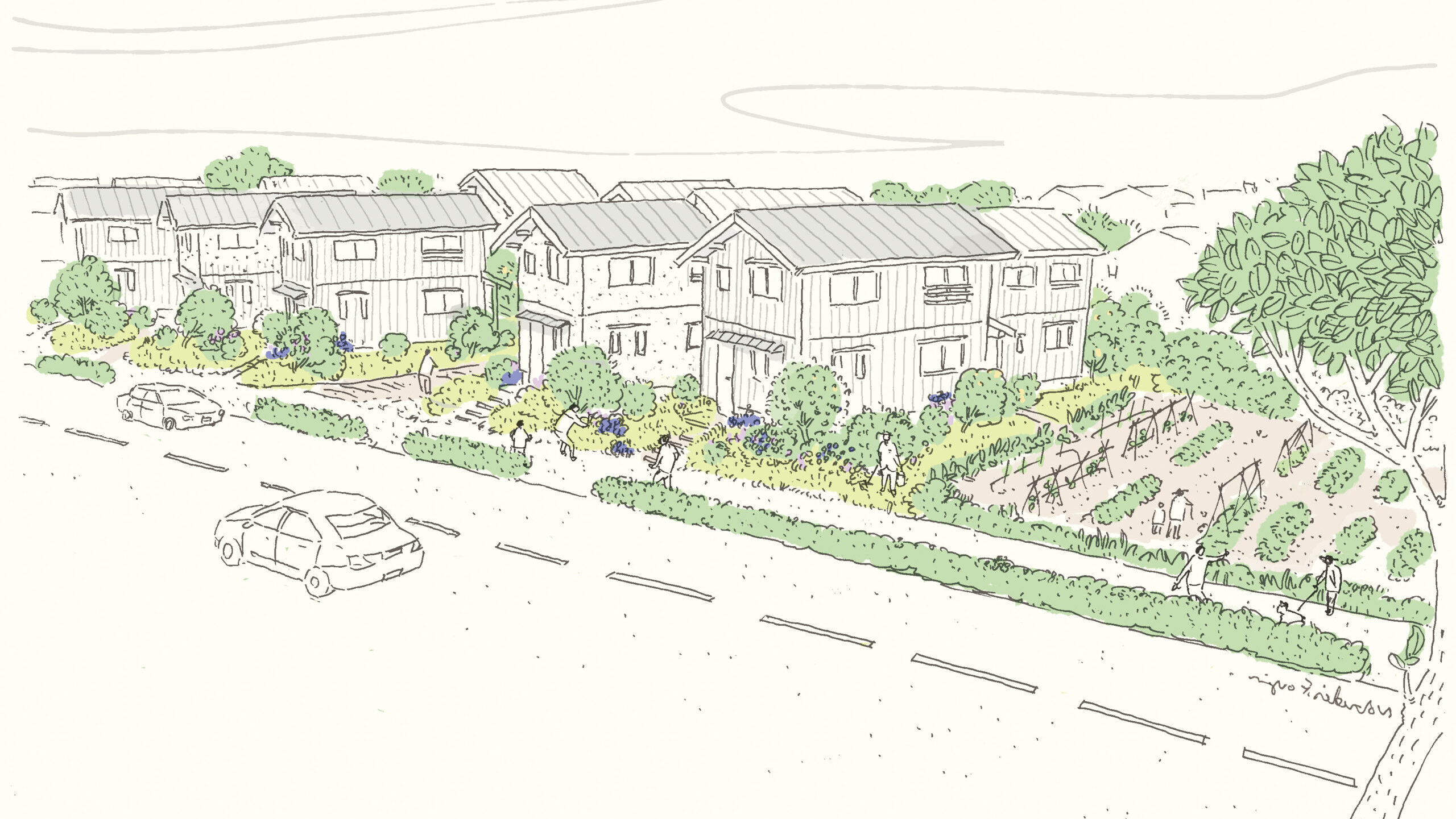 東久留米市に広がる約 2,900 ㎡の小麦畑を舞台に、木々や花々が彩る、緑豊かな宅地を育むプロジェクトが始まっています。「花のある自然で美しい暮らし」を見つけられるような “場”を育む」ことを大切にする「タネニハの森」と、緑豊かなまちなみや、その地で紡がれてきたコミュニティを次世代へつなぎ、発展させることを目指す「ひととわ不動産」が協働で進める取り組みです。
