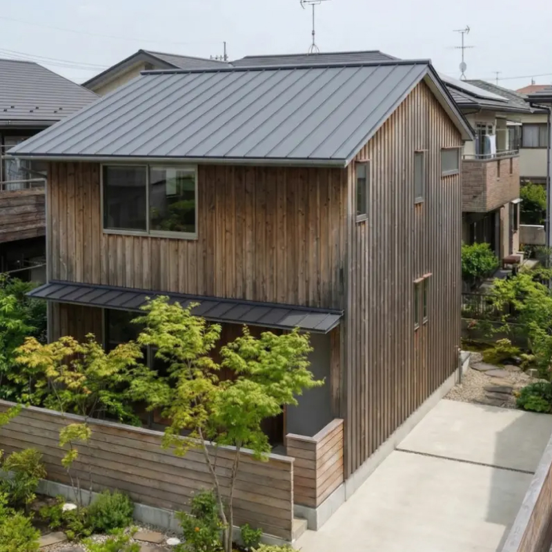 - □外装:屋根/ガルバリウム鋼板 外壁/杉板縦張、ウッドロングエコ塗装