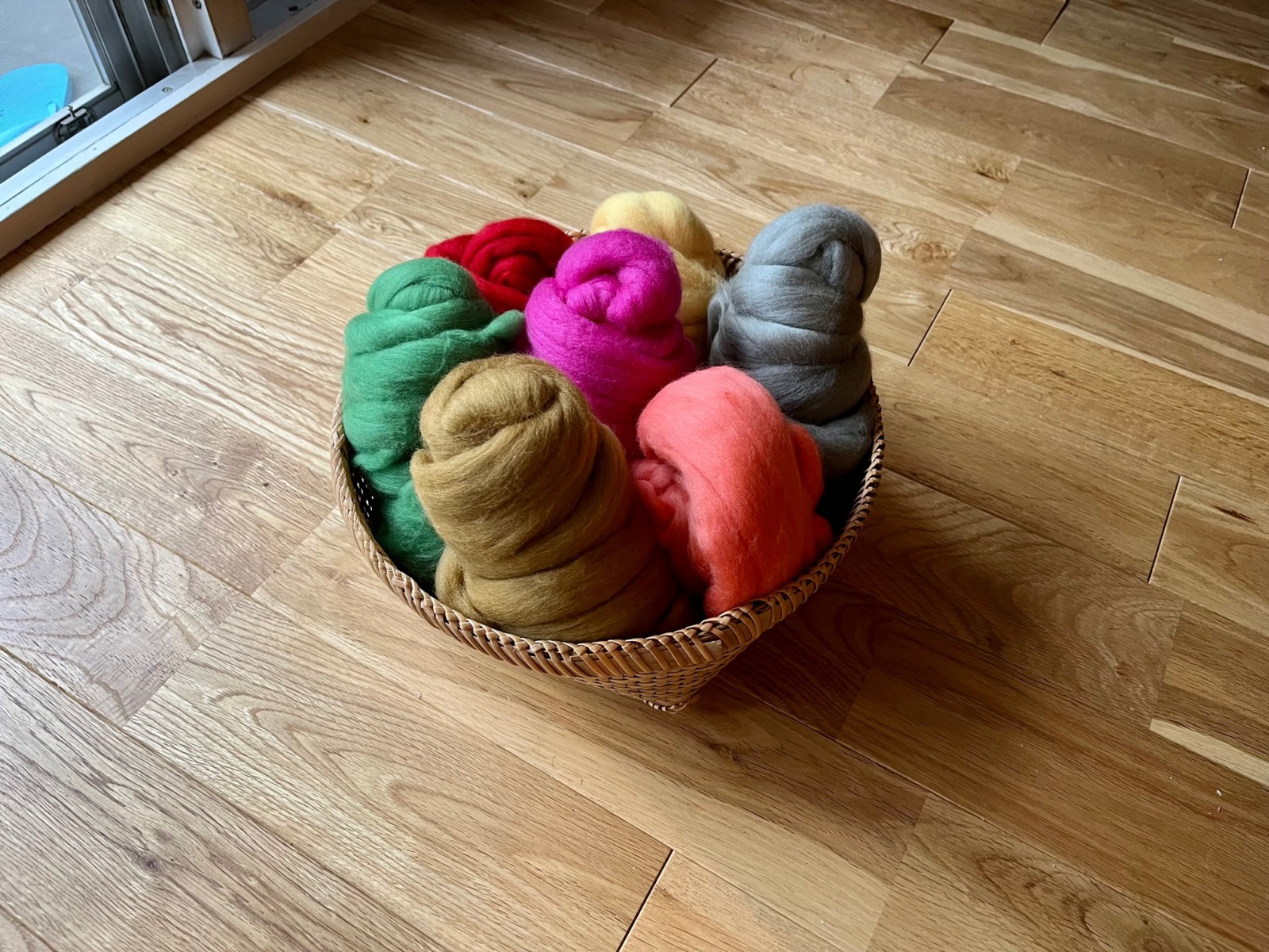 原毛からフェルトを作り体験!色を自由に配色した15センチのマットが仕上がります。フェルト道具付きなのでご自宅でも作れます。(追加原毛販売あり)
