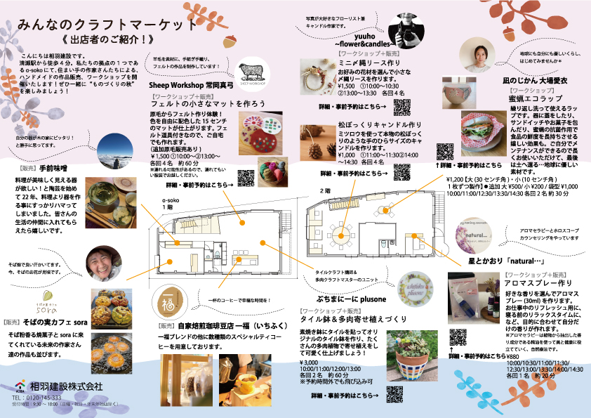 【秋のものづくりフェスタ】みんなのクラフトマーケット 清瀬a-soko(終了)