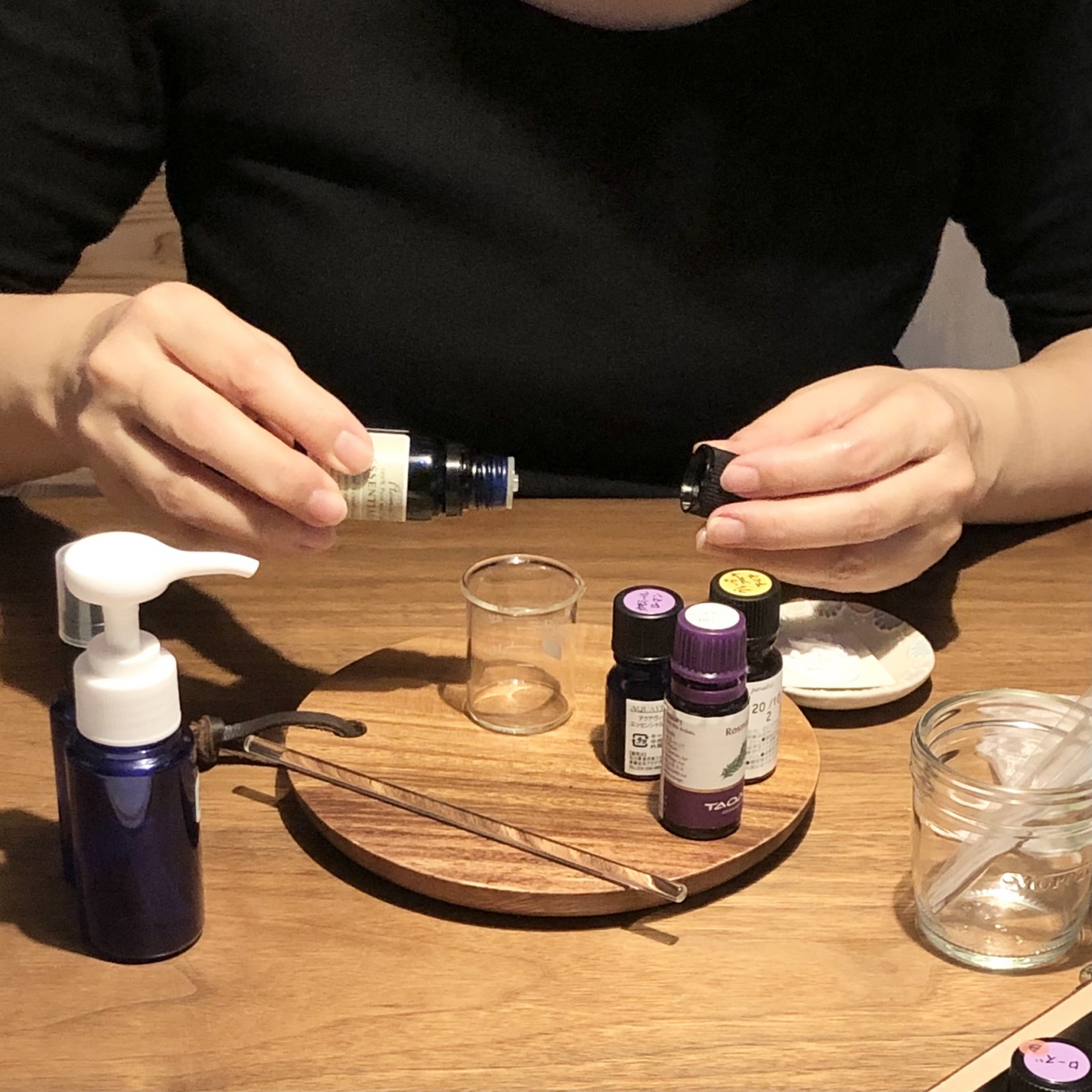 お仕事中のリフレッシュ用に、寝る前のリラックスタイムに、など、目的に合わせて自分だけの香りが作れます。