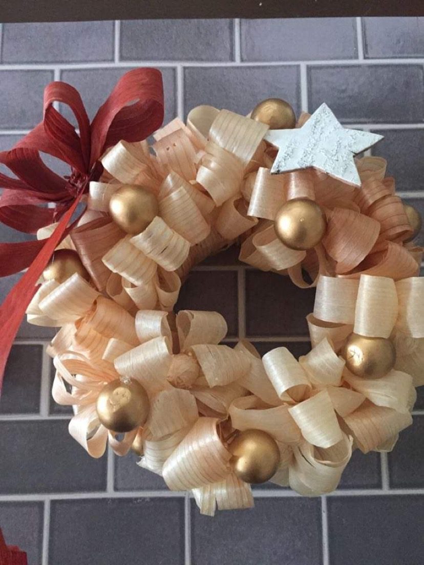 大工さんがカンナで削って出来るカンナくずで作るクリスマスリースです。