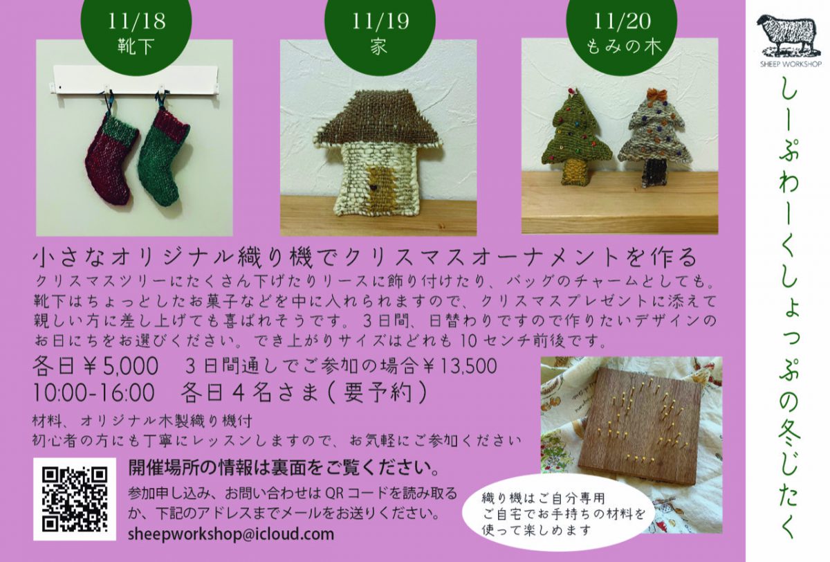 オリジナル織り機でクリスマスオーナメントを作るワークショップ