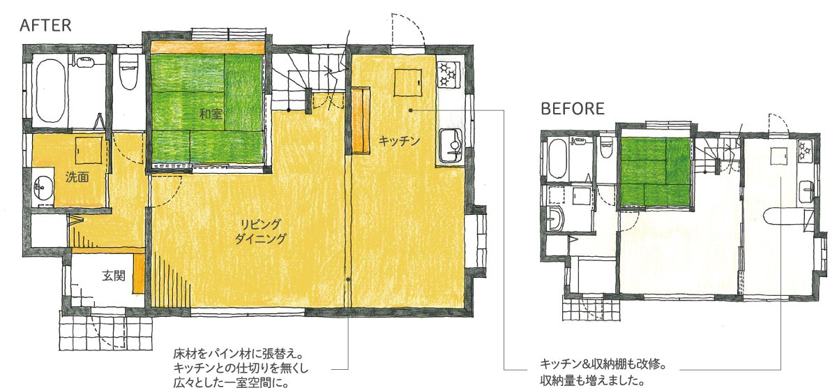 「多くの時間を過ごす1階をすみやすく」がテーマのリノベーションです。