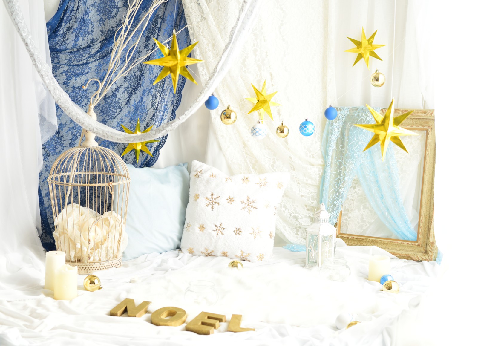 クリスマス仕様のフォトブースで撮影します。