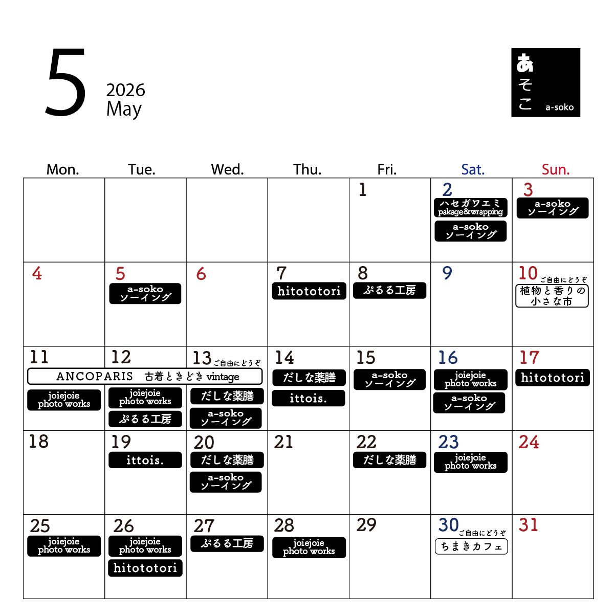 (a_soko.kiyose)にてイベントカレンダーを公開しております
