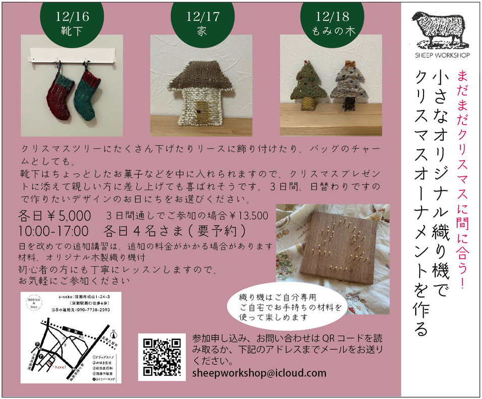 オリジナル織り機でクリスマスオーナメントを作るワークショップ